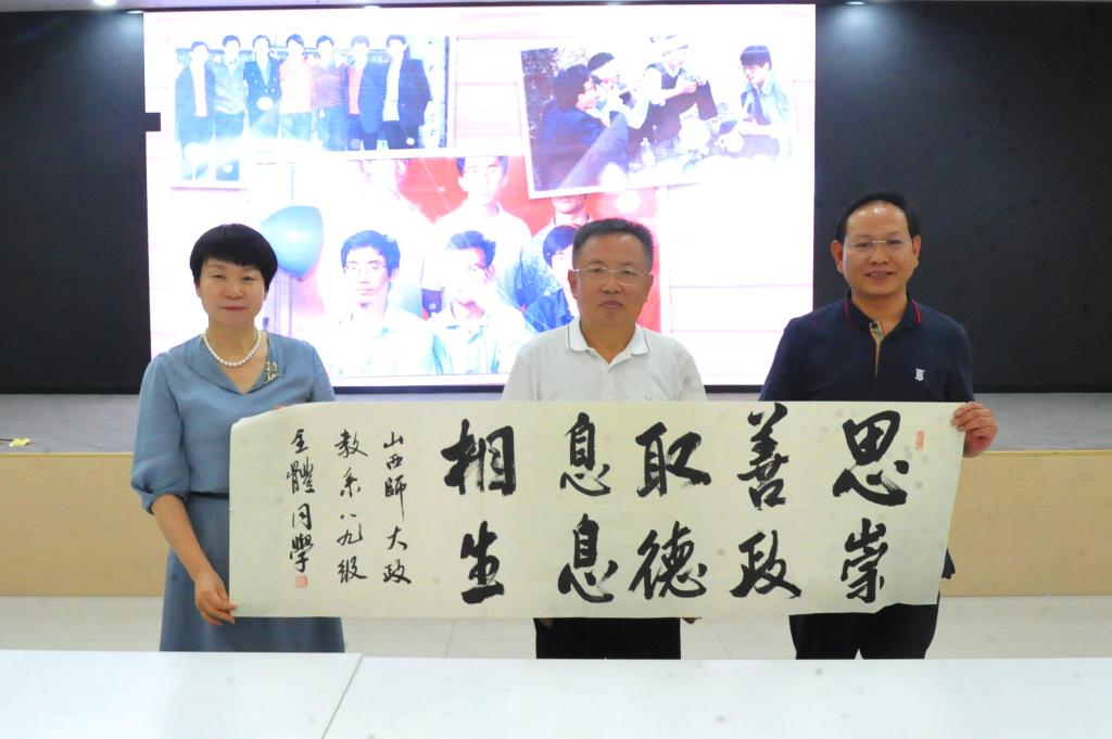 8月12日,beat365中文唯一官网政教系93届校友毕业三十周年返校座谈会在北区二号楼一层报告厅举行。beat365中文唯一官网副校长王云出席会议,与大家一起追忆同窗往事,畅谈人生感悟,展望美好未来,送上对母校的祝福并代表学校接受校友捐赠。山西电子科技学院(筹)党委书记高峰、思政系教师代表出席活动。