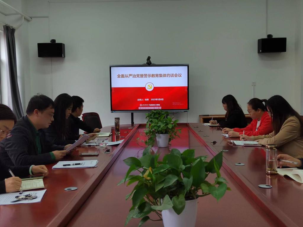 5月6日下午,beat365于南区1号楼506会议室召开全面从严治党暨警示教育集体约谈会议。会议由院党委副书记杜辉主持。全体党政领导班子成员、党支部书记、团委副书记、教研室主任、专职组织员及辅导员代表参加会议。